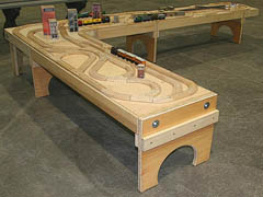 Issaquah Train Show - Set up in the old station, requiring shims to level the layout due to rough and uneven flooring.